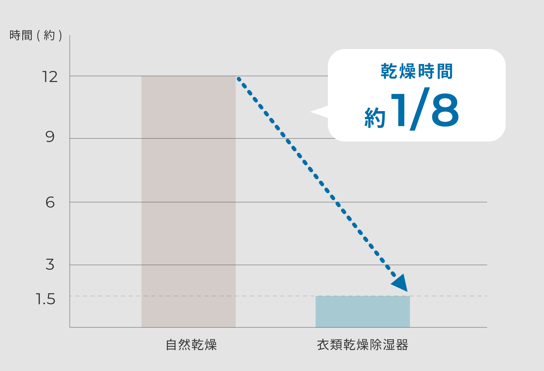 自然乾燥に比べて自然乾燥の約 1/8の時間で乾燥。