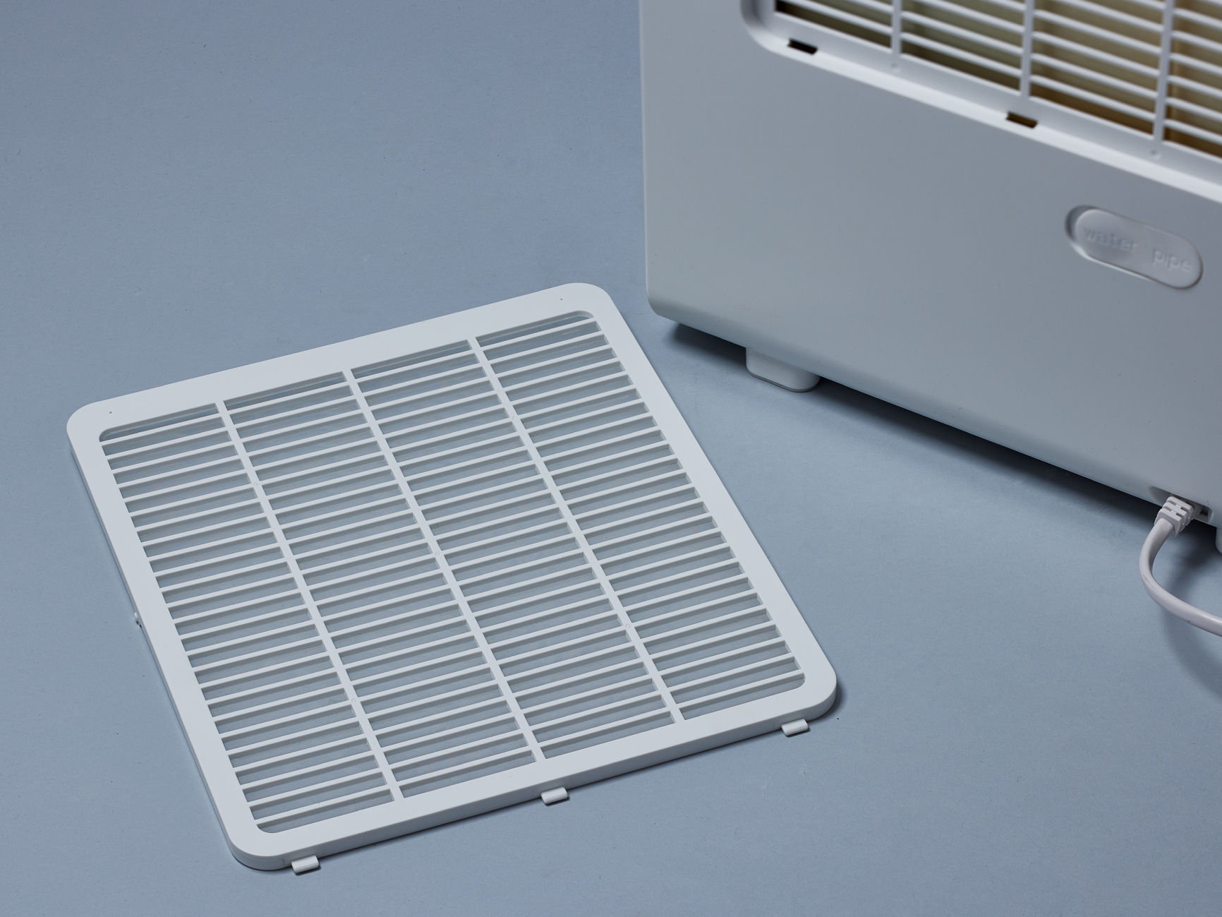 フィルター本体背面からフィルターを取り外し、掃除機でフィルターのほこりを取り除いてください。水洗いも可能。