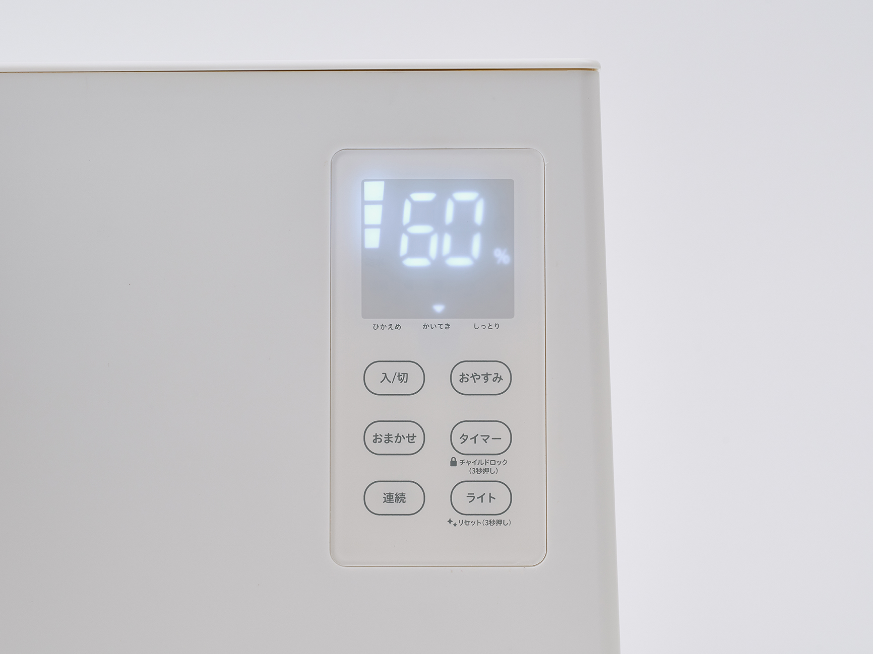 ひかえめ(50%)、かいてき(60%)、しっとり(70%)の3段階から選択可能。