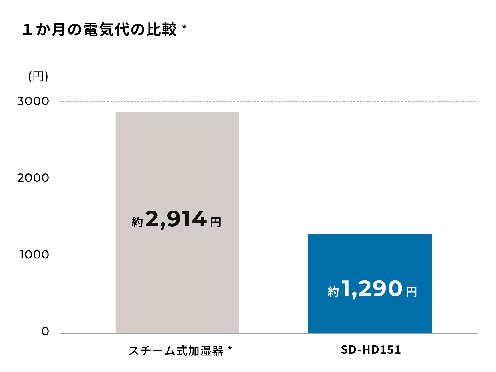 *3 34.69 円/kWh で計算、1 か月(30 日)・1 日 8 時間使用した場合。本製品の消費電力:155W、スチーム式の消費電力:350W で算出。(自社調べ)