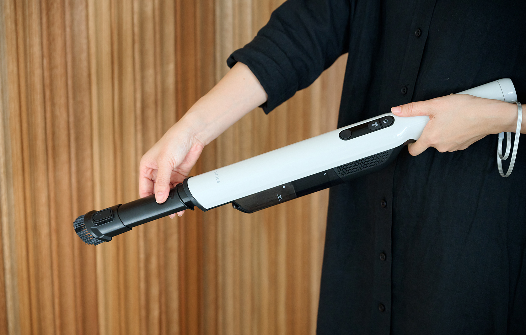 ソファーの隙間などのお掃除にブラシ部分はスライド可能。細いノズルでソファーなどの隙間もしっかりお掃除