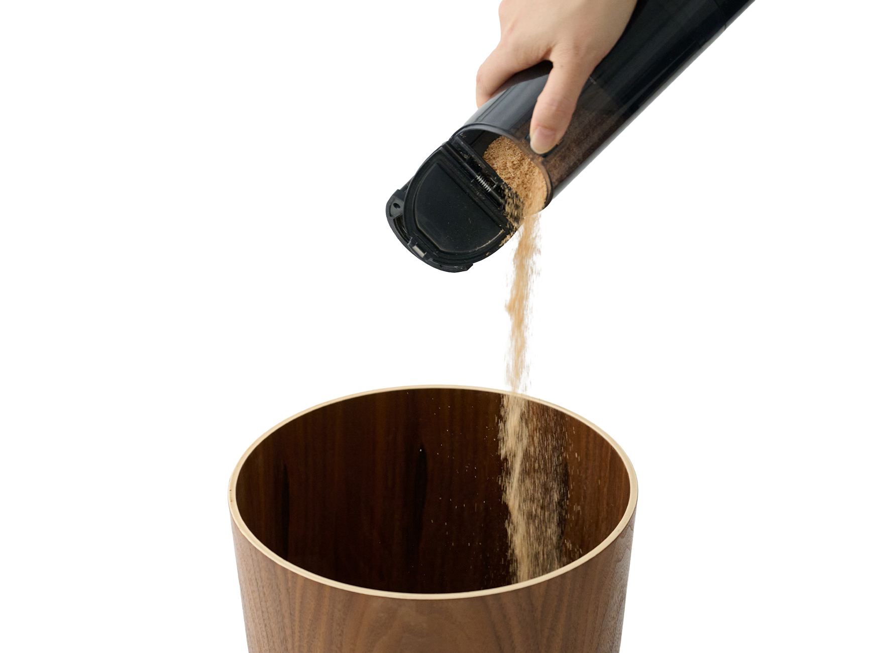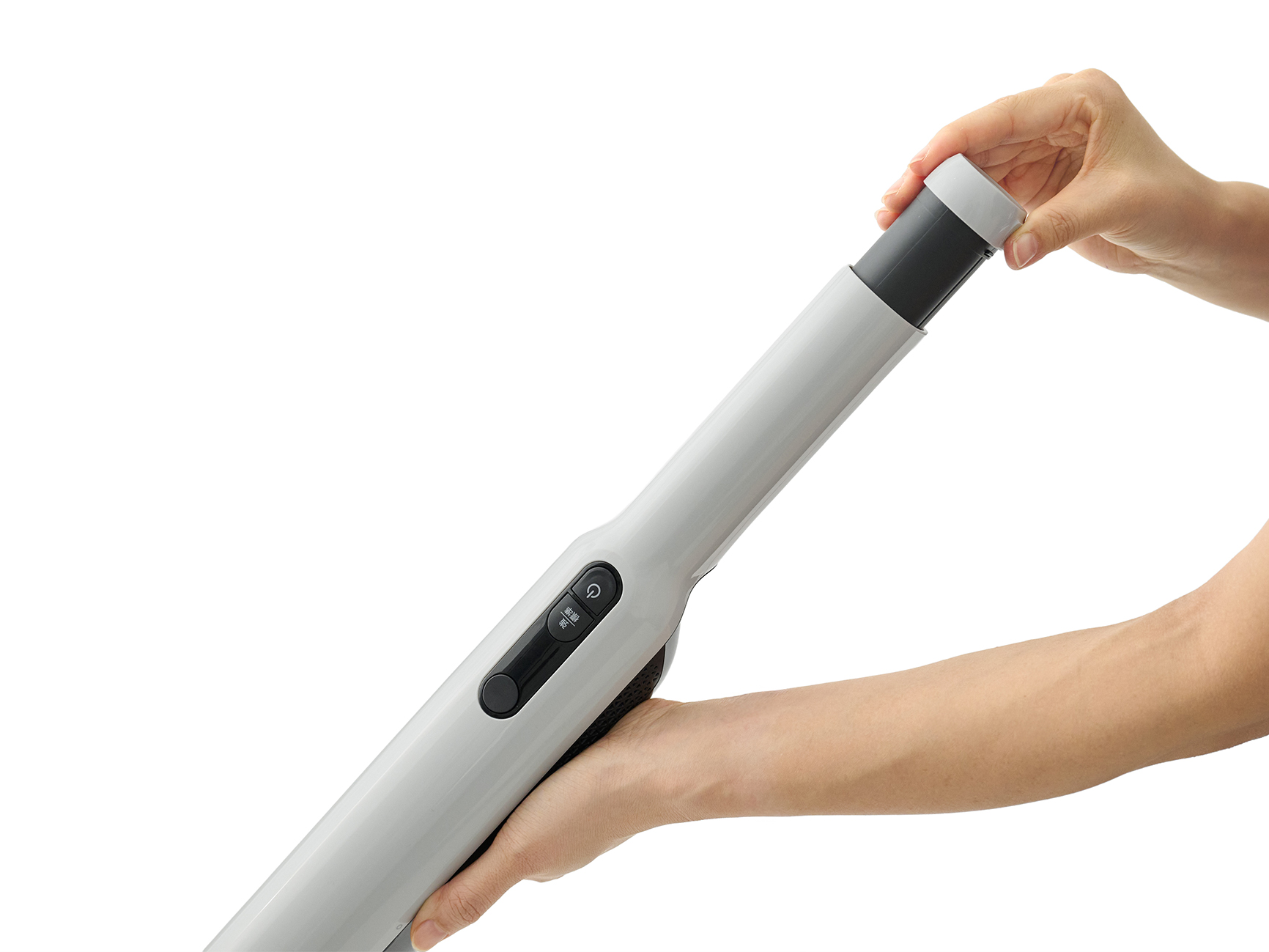 ごみ捨てかんたんダストカップを本体から取り外すことなくワンタッチでごみ捨て可能。大きなごみはそのままサッと、また絡まりやすい髪の毛やほこりも落としやすく、ごみ捨てかんたん。