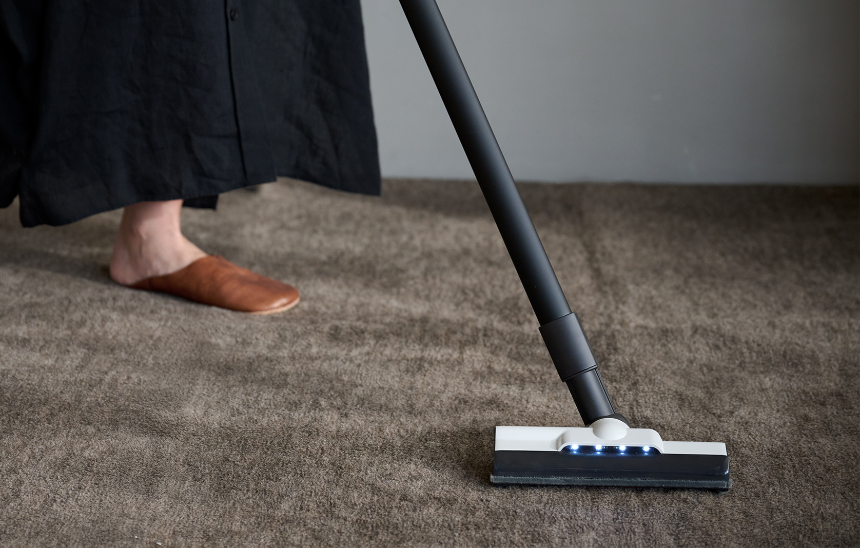 ヘッドに内蔵したモーターでブラシを回転させ、パワフルにごみをかき出しながらブラシの回転力だけで前に進む「自走式パワーブラシ」により、力を入れずに楽にお掃除が可能です。