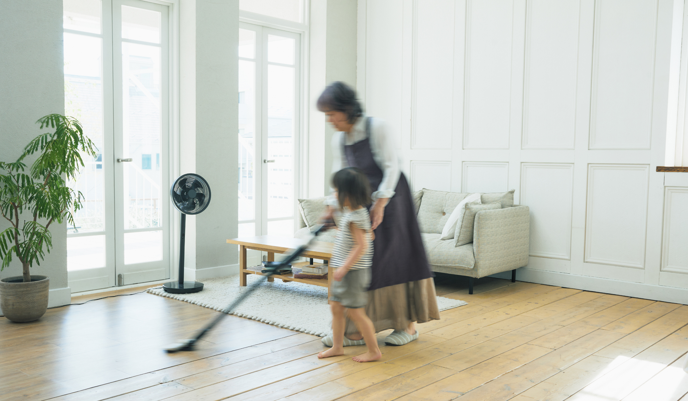 お掃除中に部屋の中を行き来する、お掃除中などに