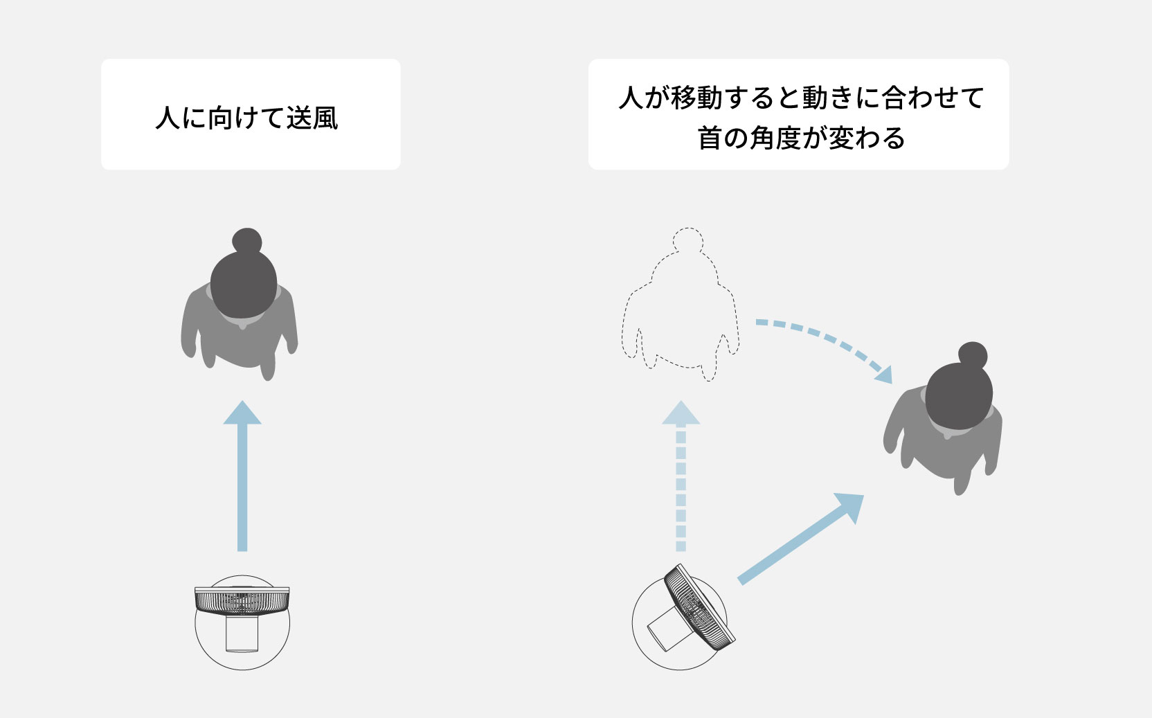 お風呂あがりにお風呂あがりなど、涼みたい人にだけ風を送りたいときに