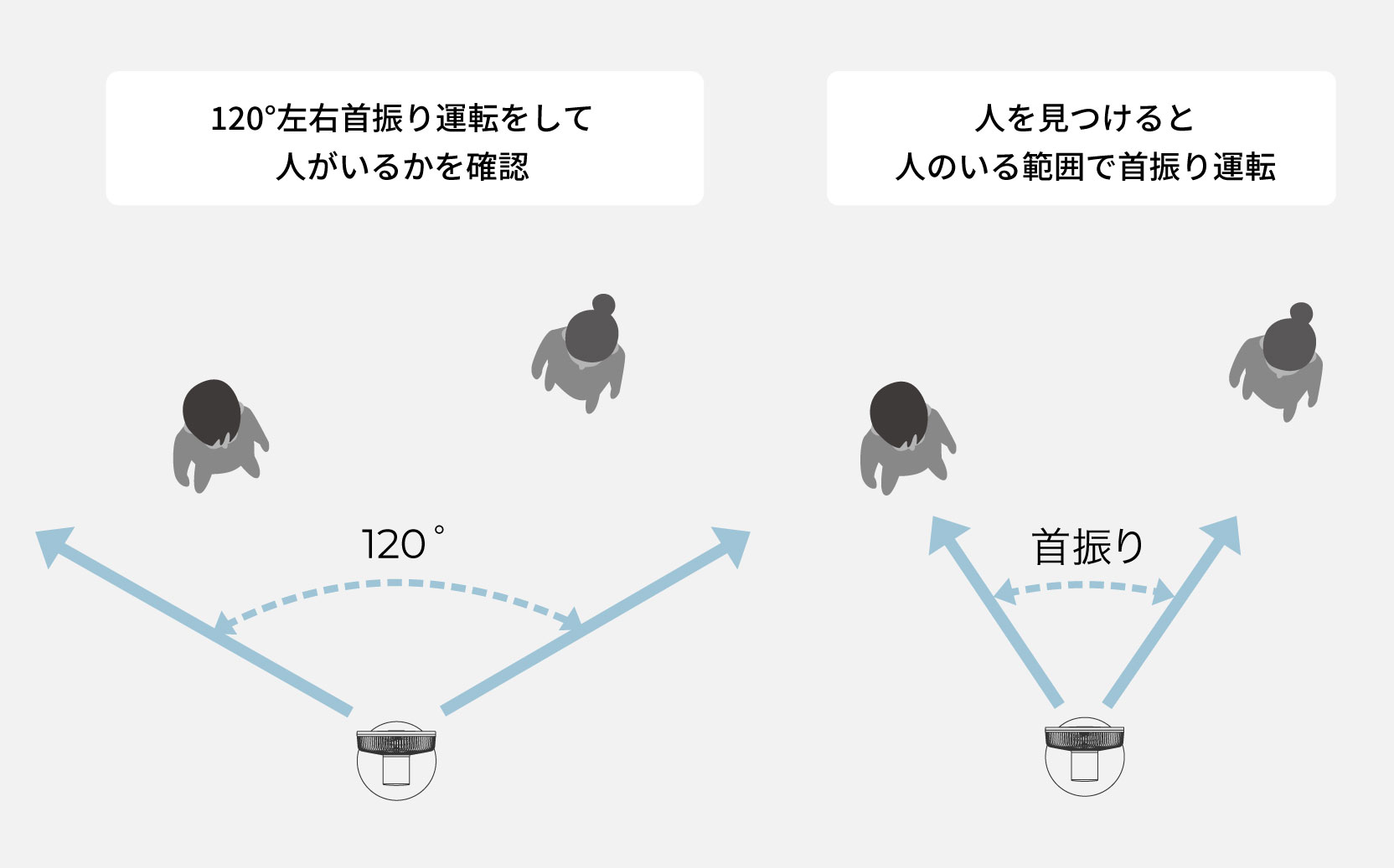 複数人のときに人のいるところを中心に送風する「やまわけ」機能*1