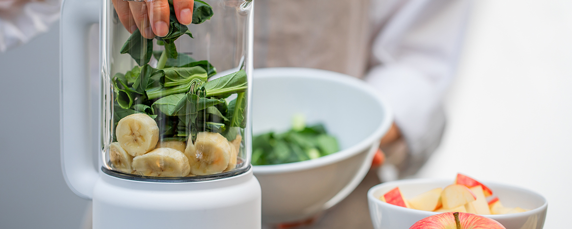 まるごと投入で、なめらかなスープやスムージーがつくれます。