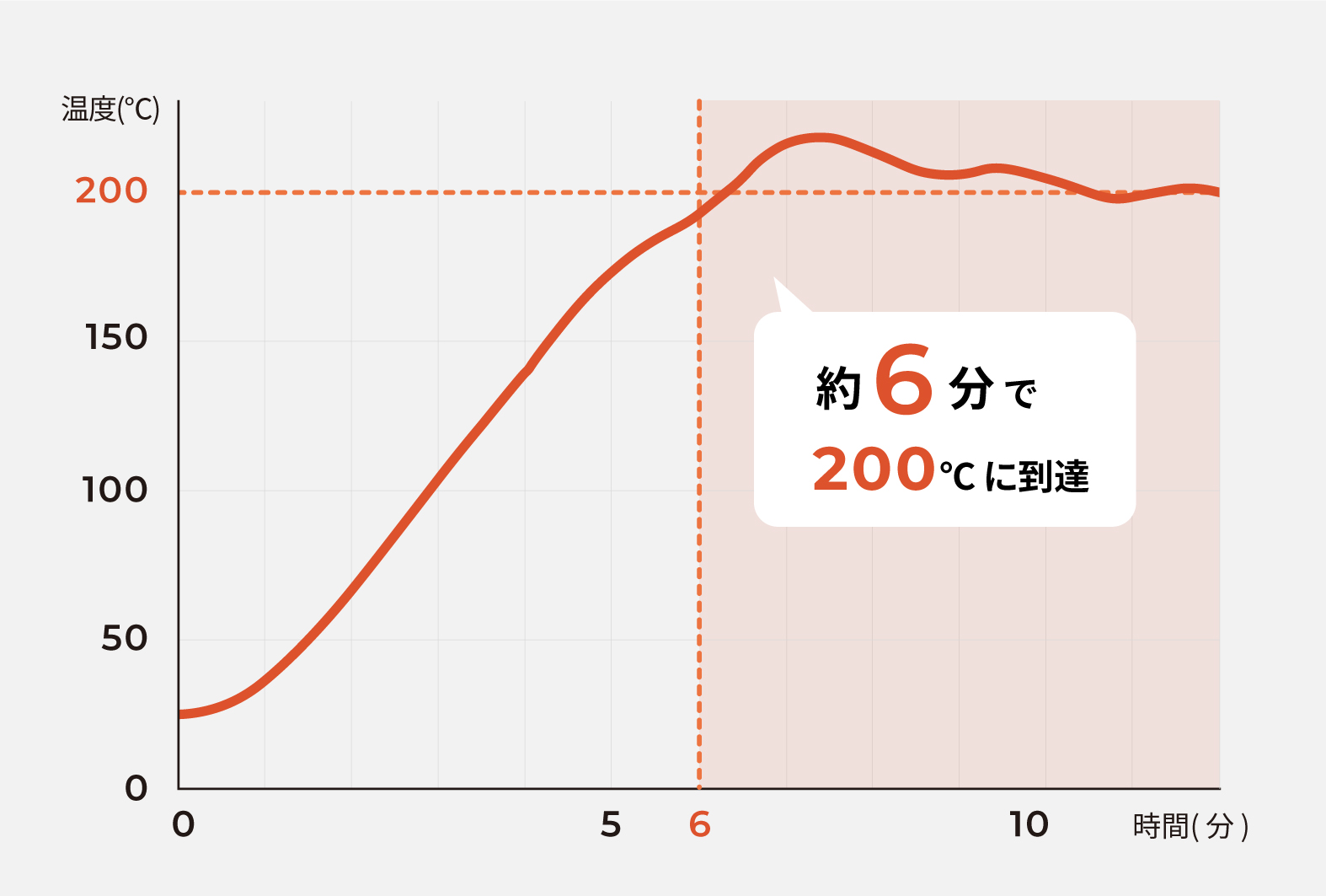 深皿を使用した場合、200℃に到達するまでの時間は約6分*1。
