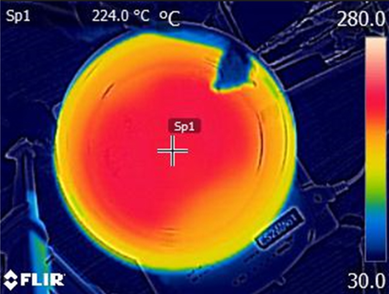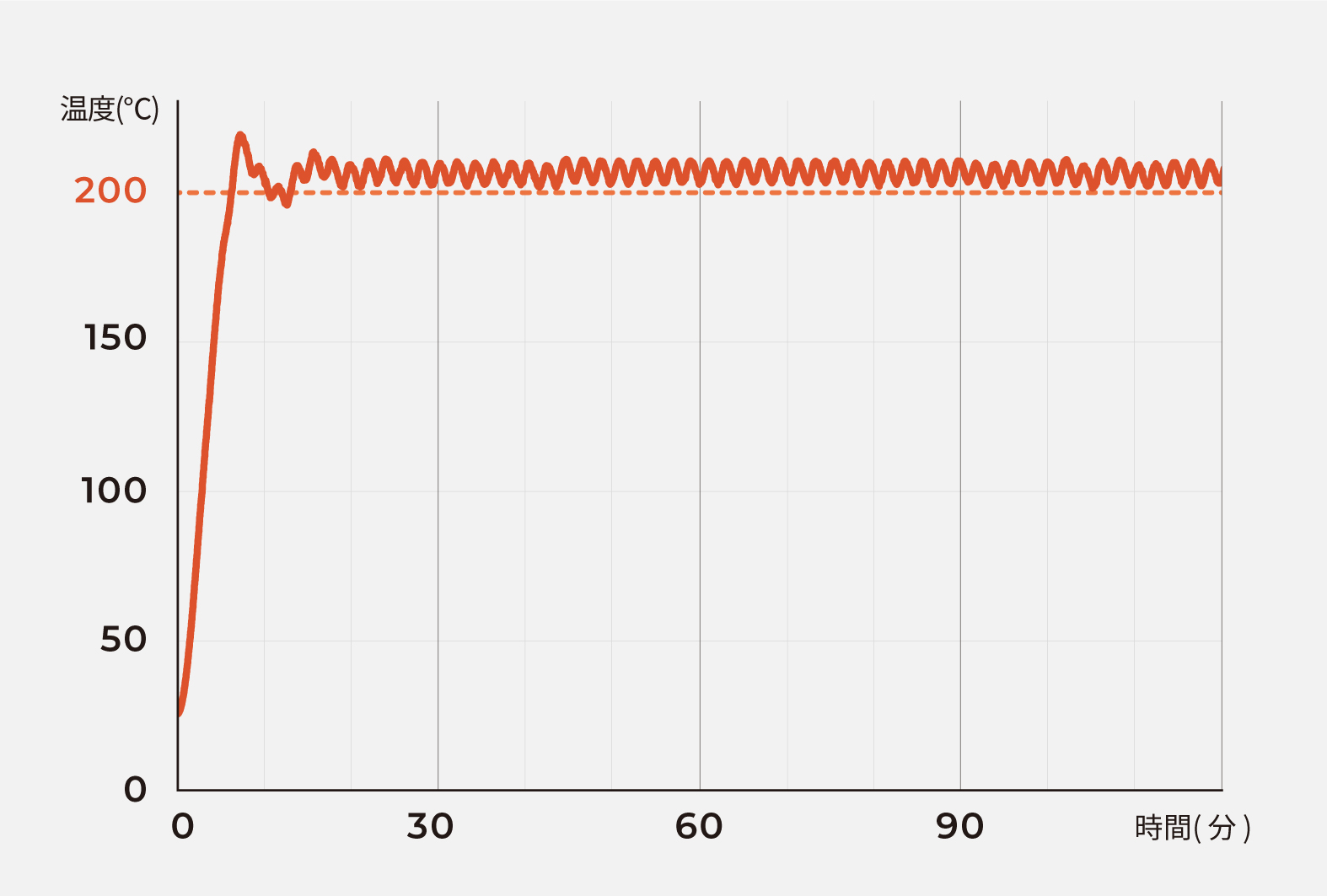 正確な温度制御で200℃を一定に保ち、