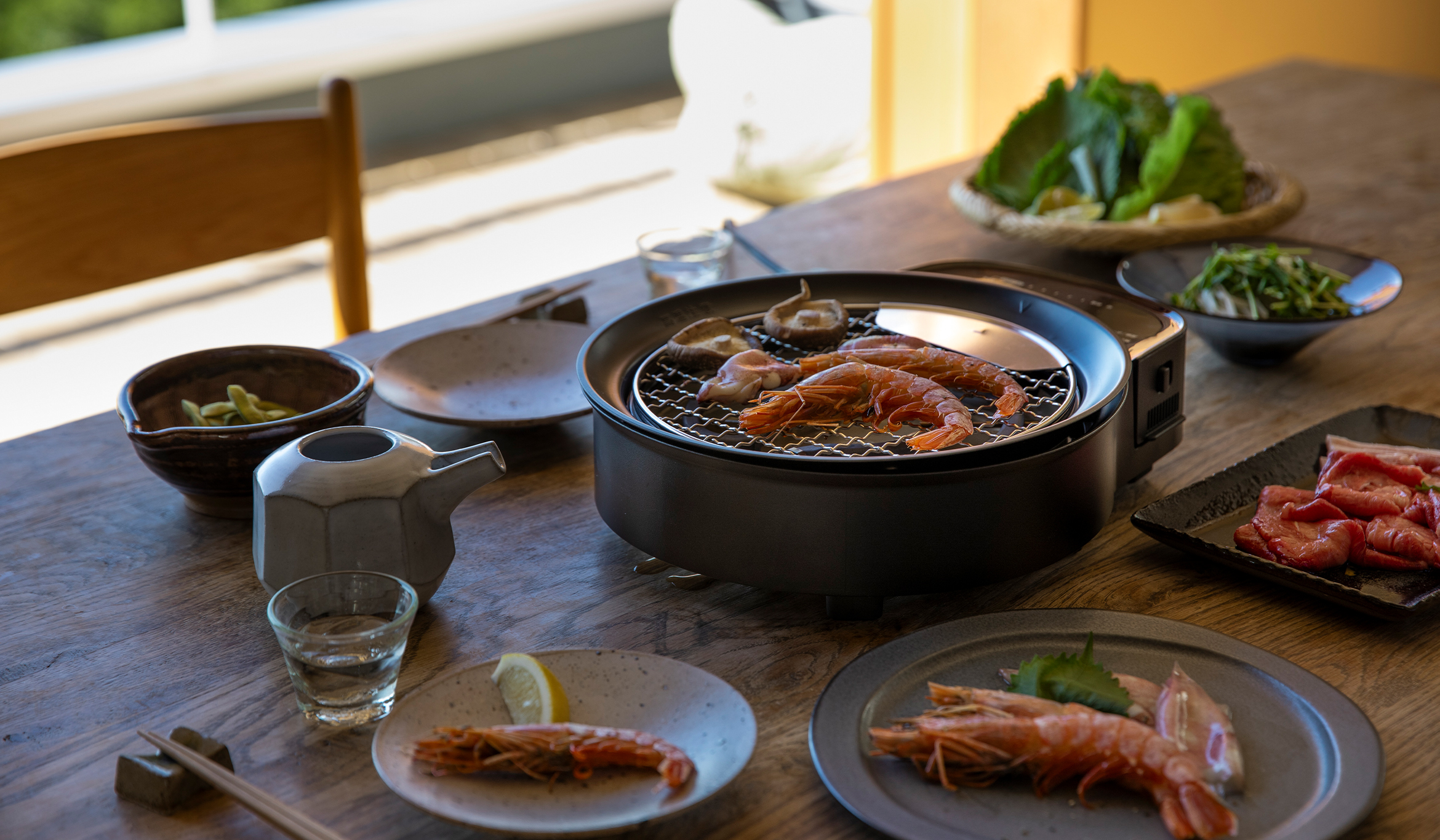 卓上で焼いて、熱々を。