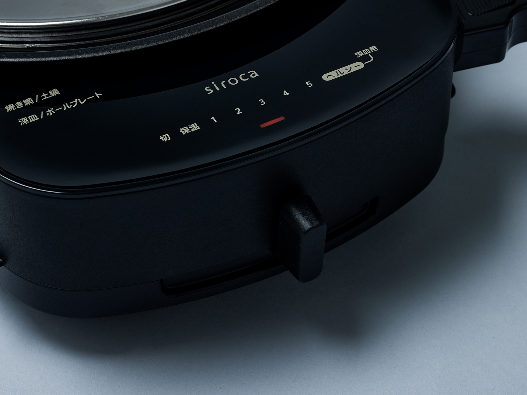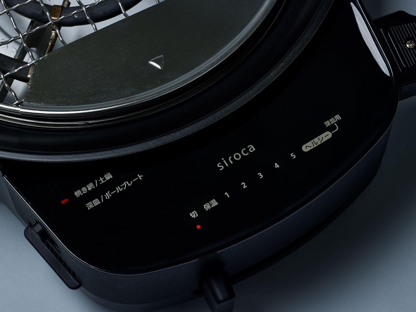 深皿使用の際に、プレートの温度を一定に保ち、焦げや煙を抑える「ヘルシーモード」を搭載。