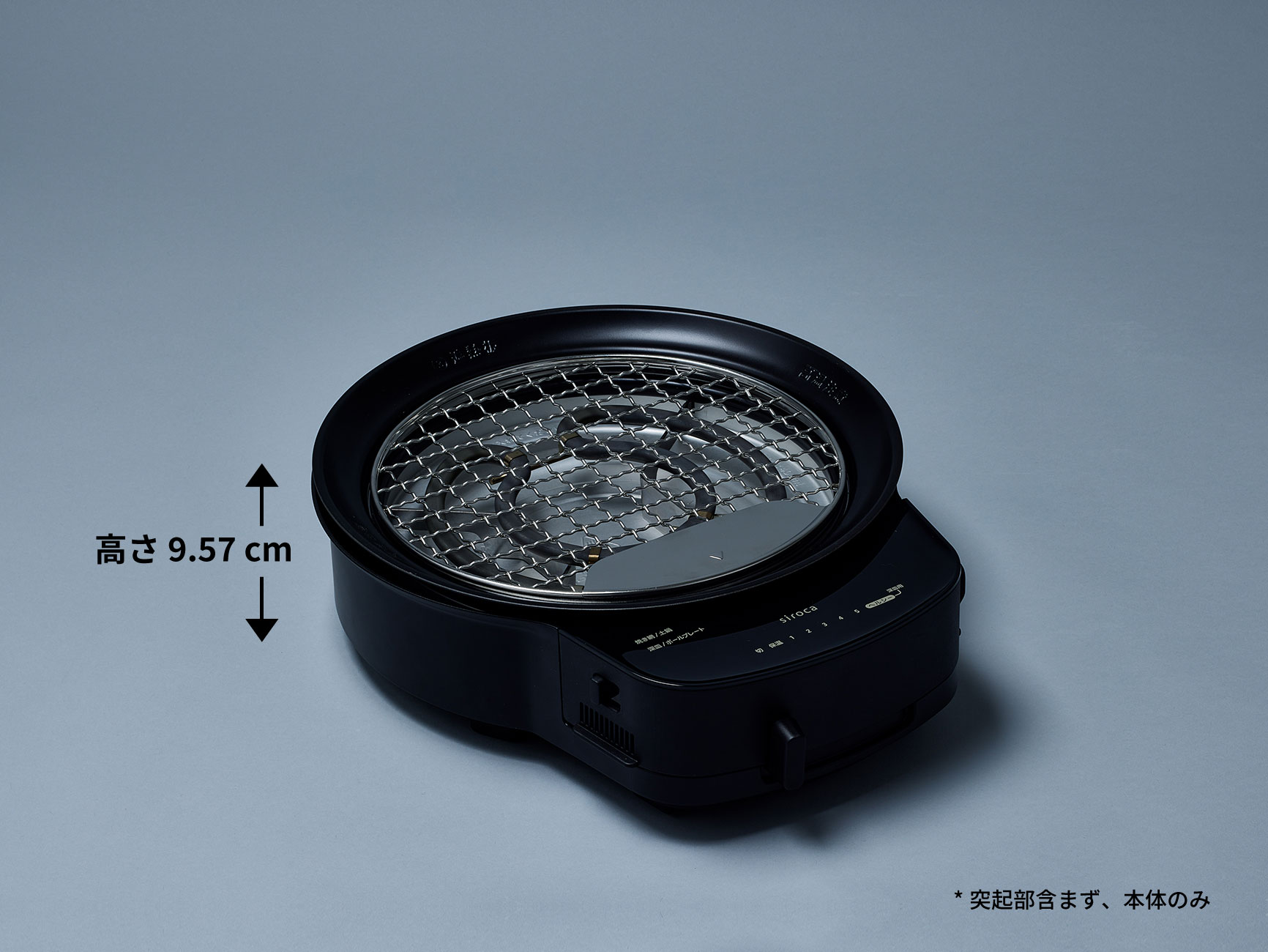 本体のみ:2.2 kg 焼き網:0.2 kg 深皿:0.9 kg ボールプレート:1.3 kg ふた:0.6 kg 土鍋*:3.5 kg(陶製すのこ、土鍋ふた含む) *SQ-D151Dのみ付属 |