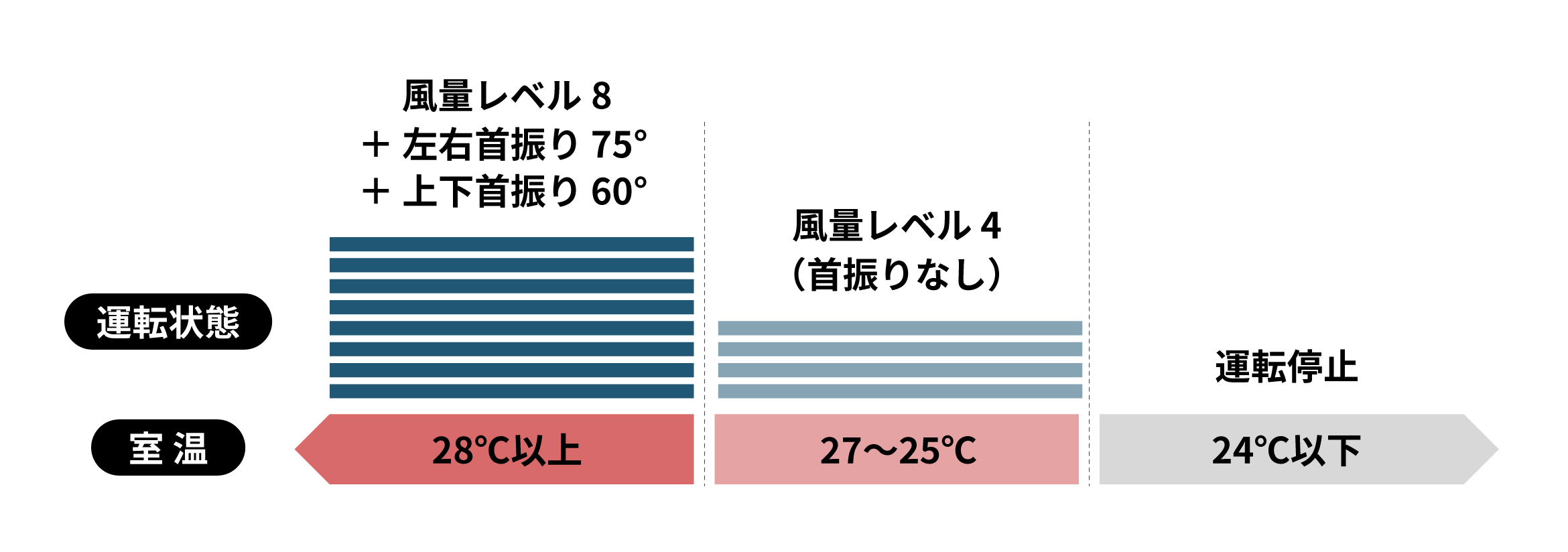 自動的に室温に応じた風量と運転状態に切り替えて運転。