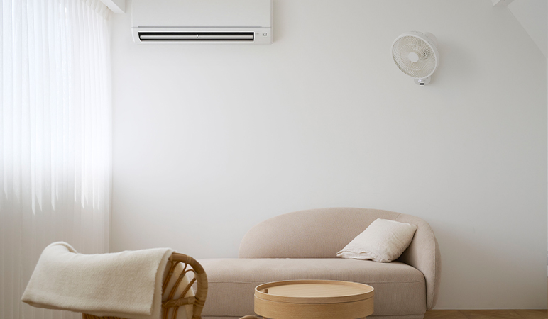 広い空間に対応可能で、部屋中すみずみまで送風ができ、サーキュレーターとしても活躍します。